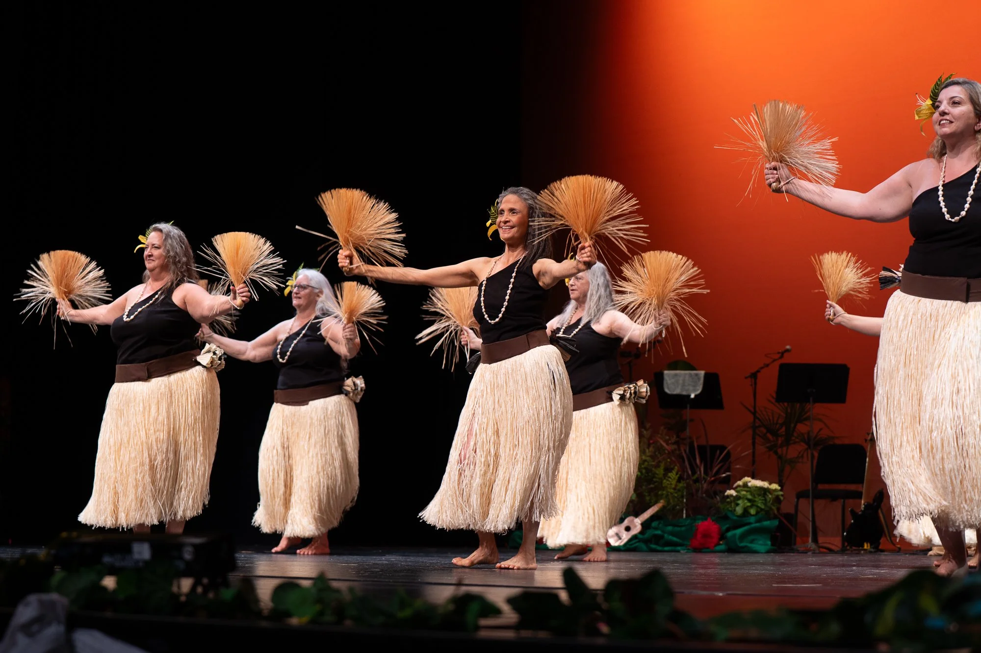 Our intermediate/advanced Hula classes are open to adult dancers with previous Hula dance experience. Haumana (students) should expect to learn a number of challenging dances geared to the overall level of the class (intermediate/advanced). Along with their dances, haumana will also learn all Hula basics with advanced direction/staging, oli (chants), all hālau (school) protocols, and to dance with implements. Classes are available at a moderate and vigorous physical pace and run for 1.5 hours every week.